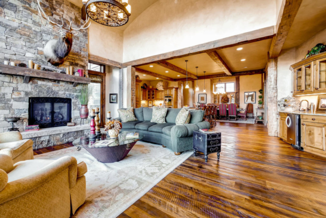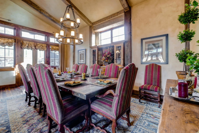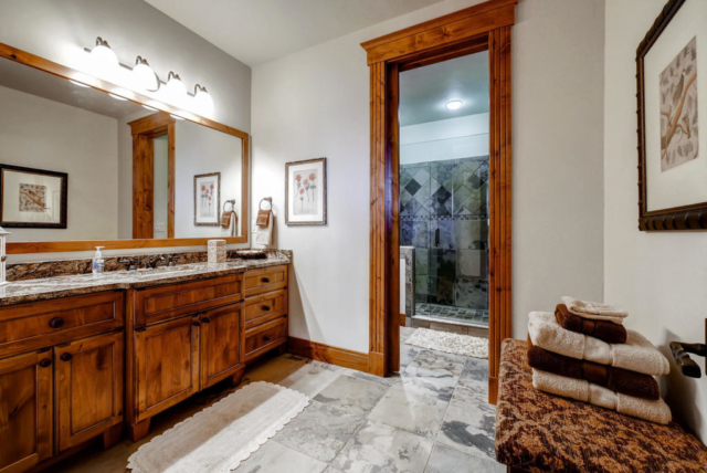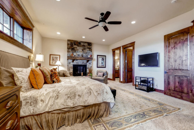 With a spacious floor plan this home offers 4 master suites, a lavish gourmet kitchen, and a dinning room that seats 10 – 12. Cozy up next to one of four fireplaces throughout the house, including a double-view fireplace between bed and bath and an exterior fireplace. There are 3 balconies to enjoy the views and a 920 square foot patio with snow-melt system for year-round use.